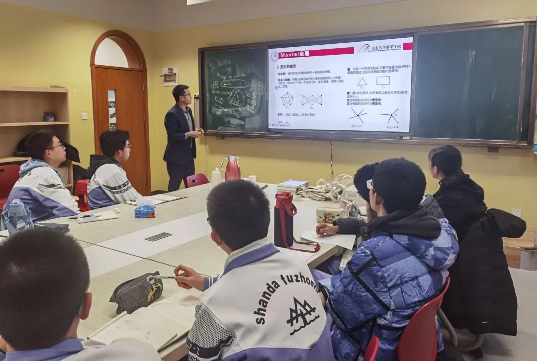 凝心聚力,赋能科普高质量发展。打造“万物皆数”科普讲座、“研究生进课堂”活动、“小数苗”志愿服务、未来科学营等特色品牌活动,走进beat365中文官方网站附属中学、山东省实验中学、历城第二中学、历城区实验小学、山东师范大学附属中学、济南新航实验外国语学校等中小学,向师生普及数学文化和数学知识,引导学生畅游“数学之海”,探索数学奥妙;与山东省实验中学合作建设数学文化拓展基地,协同育人,进一步完善基础学科教育人才培养的长效机制。学院专业教师、研究生、本科生协同参与,形成育人合力,既为中小学生构建了广阔的数学探索空间,又助力青年学子在实践中求真知、长本领、增才干,形成了“一个平台、两个主体、三方聚力、四个品牌”的“1234”工作模式。
