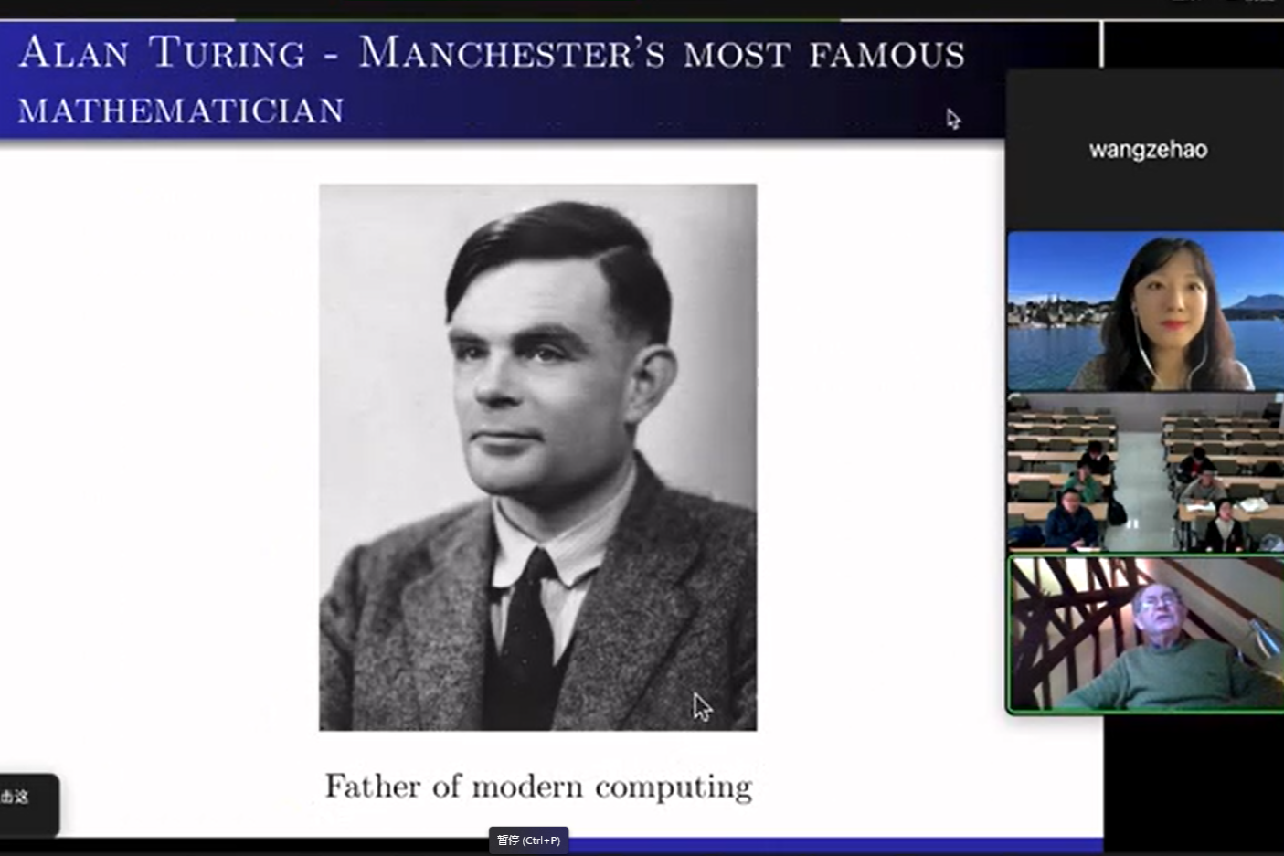 Peter Duck教授向与会师生展示了曼大建校200周年以来的光辉历史、校园环境和院校成绩,并对曼大beat365中文官方网站的学科构成、学科实力以及曾在此求学任教的知名数学家进行了详细介绍。