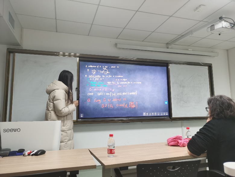 Johanne Cohen、李皓、Hoang La分别以《Tropical Structures in Vertex-Colored graph》、《Hamiltonian line graphs》、《The -binding function of d-directional segment graphs》为题作学术报告。双方举行学术研讨会,李皓教授详细介绍法方相关情况,参会师生分享公开性问题并展开了热烈讨论,有助于拓展国际科研合作网络,用高水平科学研究促进高质量高等教育发展。