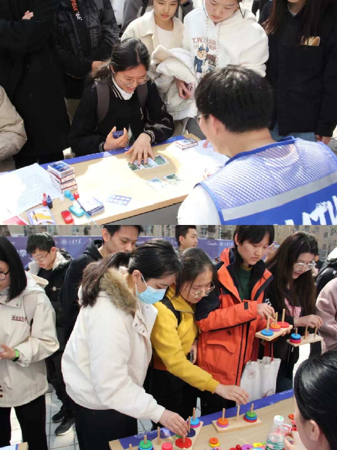 展示数学魅力,体悟趣美数学。契合国际数学日主题举办“游于数”数学游园会,1000余名师生体验鲁班锁、华容道、九连环等趣味游戏,在思考和欢笑中感受数学魅力。贴近学生生活,以“数学文化筑底蕴,神机妙算就风采”为主题举办宿舍团队挑战赛。活用数学知识,举办“搭桥承重”比赛,引导学生探索学科之妙。趣融“数”与“体”,举办“迎风奔跑,数梦成真”创意路线赛,师生在奔跑中复刻数学符号,跃享运动乐趣。