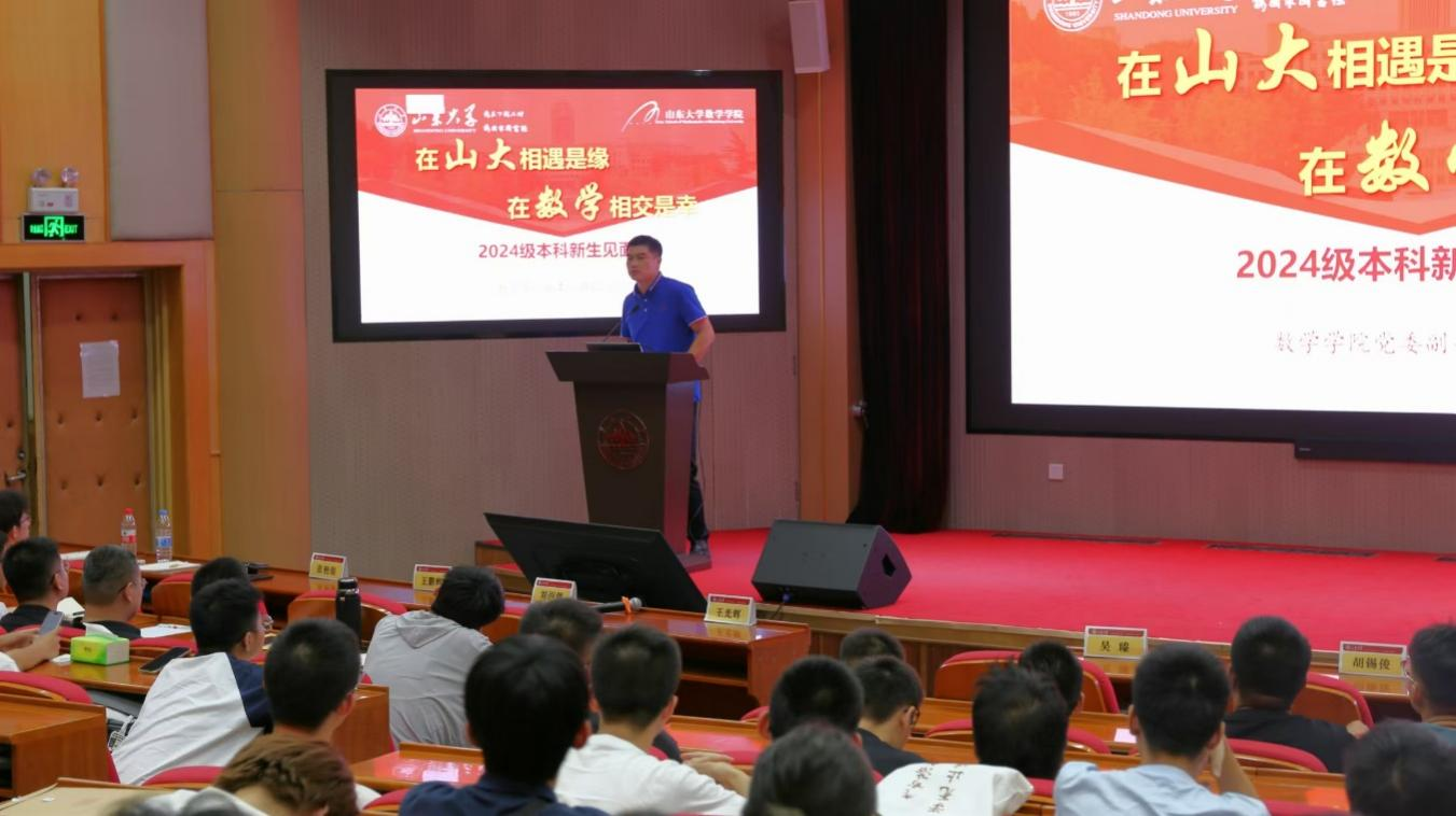 吴臻向开启新征程的同学们表示热烈欢迎和祝贺,通过两个小故事讲述了聚焦前沿科学问题和技术瓶颈服务国家重大需求、潜心把学问做好的重要性。他表示,希望大家深入领悟学校“为天下储人才、为国家图富强”的办学宗旨,传承“家国情怀、担当精神、崇实品格、创新素养”的山大基因,充分利用学校开放多元的学习资源,面向未来、拼搏进取、善于学习,从这所百廿名校的深厚底蕴和雄厚实力中,不断汲取奋进前行的力量,努力成为“最优秀的本科生”,助力推动高水平科技自立自强和中华民族现代文明建设新局面。