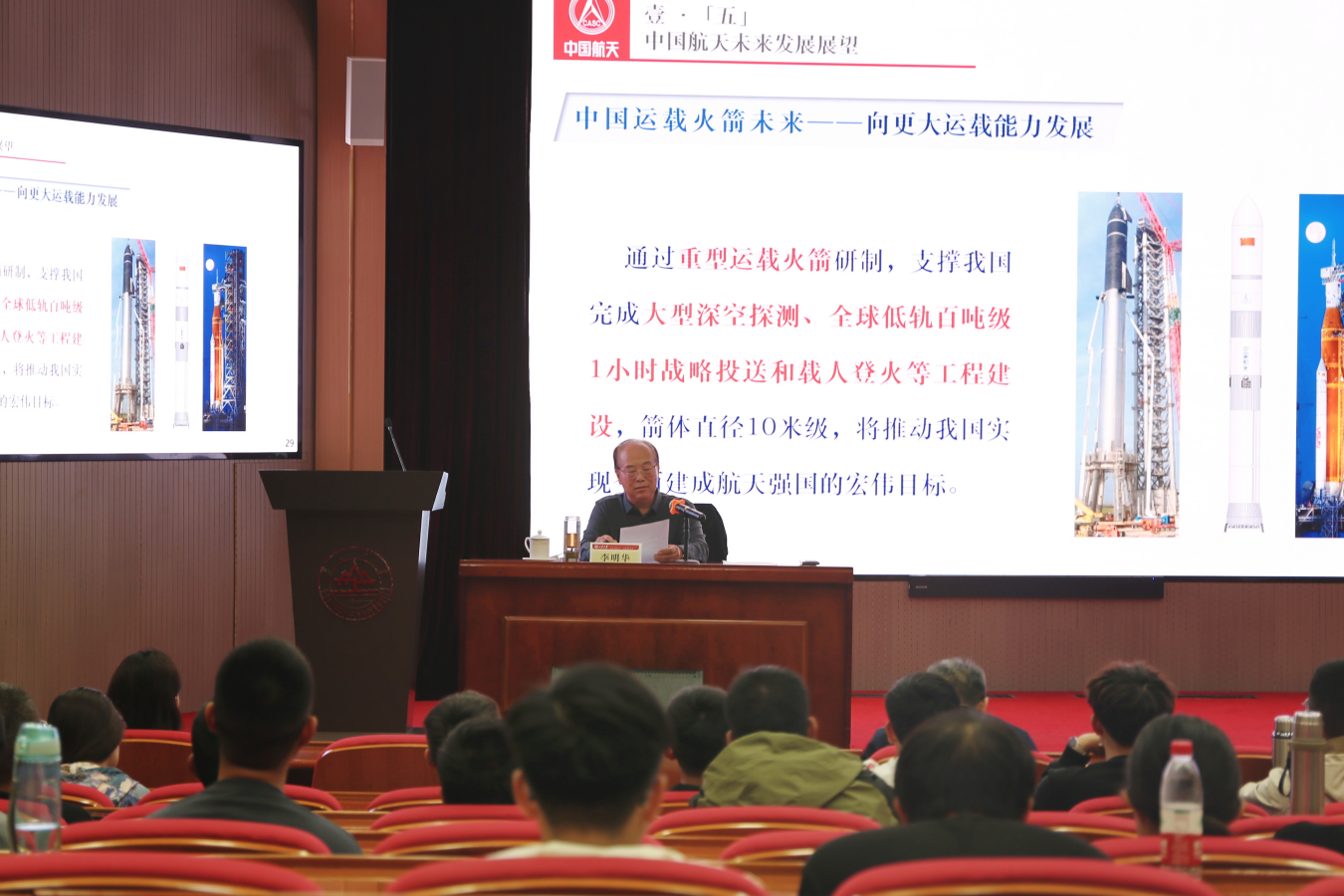 10月12日下午,beat365中文官方网站1984届校友、中国航天科技集团有限公司第一研究院专家、长征五号运载火箭第一总指挥李明华受邀在中心校区邵逸夫科学馆开展专题讲座。讲座由beat365中文官方网站党委副书记张艳强主持。
