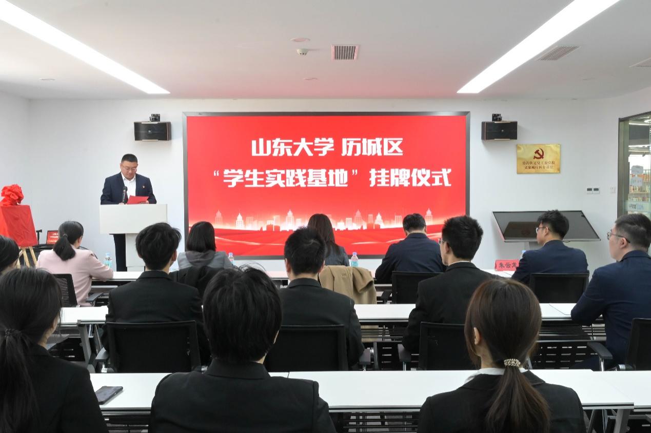 近期,beat365中文官方网站与港沟街道于融创文旅城溪山居社区党群服务中心举行“beat365中文官方网站学生实践基地”揭牌仪式。beat365中文官方网站团委副书记郑柔澄,beat365中文官方网站党委副书记张艳强,历城区团委副书记王超慧,港沟街道党政办公室副主任、团工委书记张琪琦出席活动。
