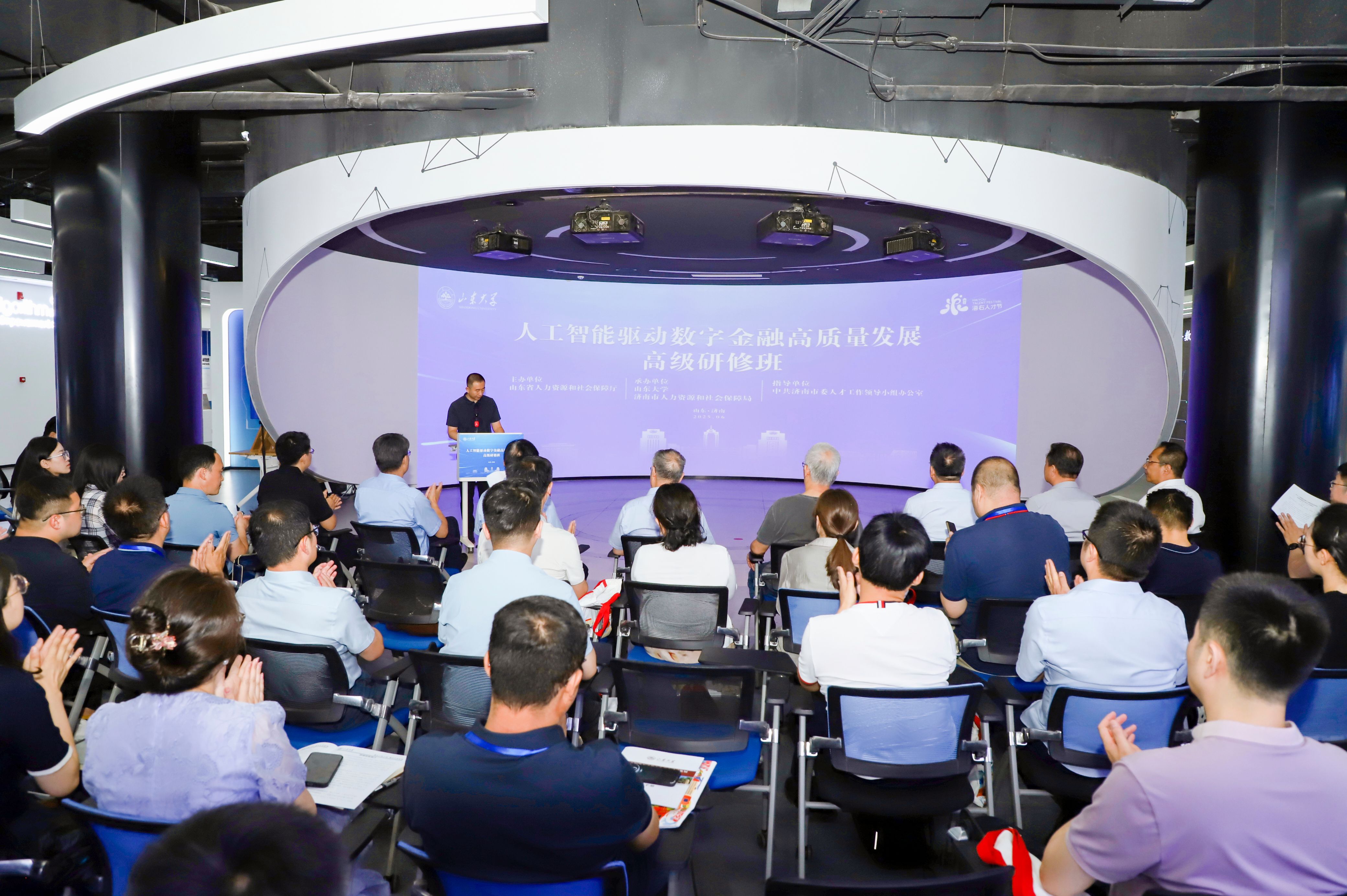 本届人工智能驱动数字金融高质量发展国家级高级研修班为期5天,作为济南市第三届“海右人才节”系列活动之一,经人力资源社会保障部批准,由山东省人力资源和社会保障厅、中共济南市委人才工作领导小组办公室主办,beat365中文官方网站、济南市人力资源和社会保障局承办。来自全国科技金融领域金融机构、企业的相关负责人及中、高级专业技术骨干50余人参加研修学习。高研班立足人工智能这一热门领域,探讨AI时代下金融行业发展的数字化实现方向与路径,对支持引领数字金融高质量发展、培养高层次专业技术人才队伍、推动新质生产力发展具有重要意义。