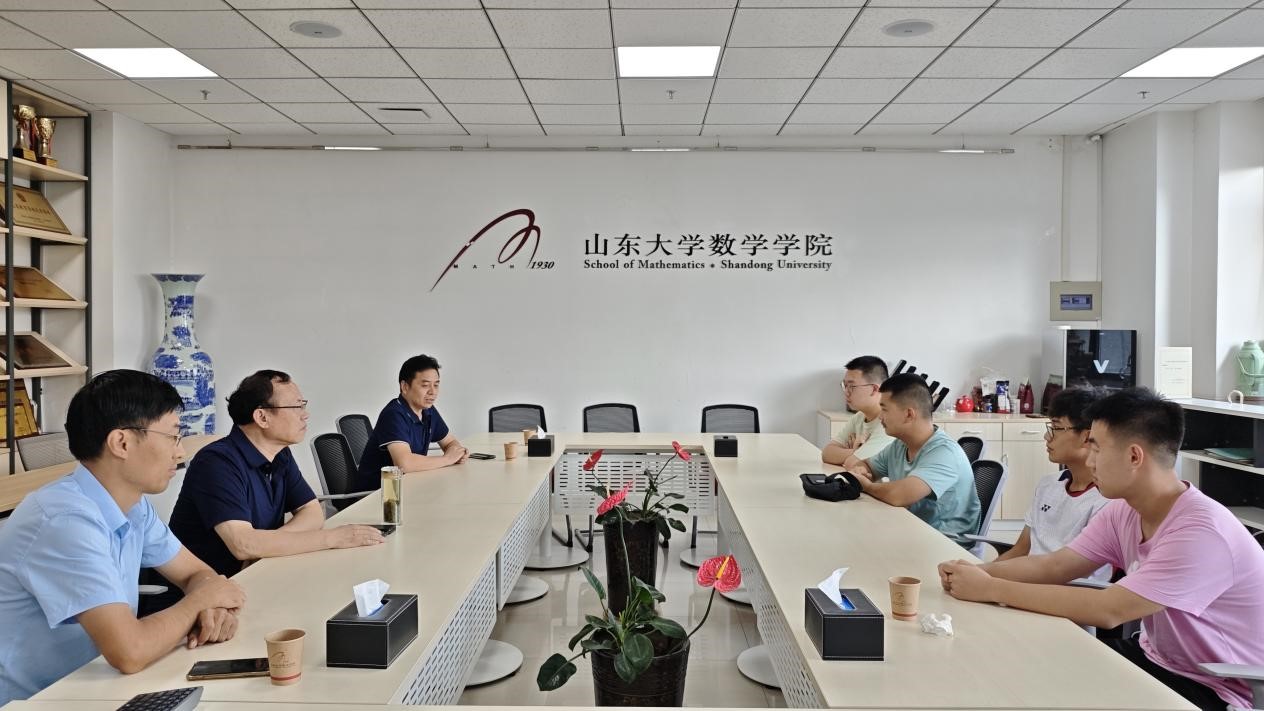 王鹏辉介绍了数学学科的发展情况,鼓励同学们在大学期间要树立明确的目标,积极探索数学领域的奥秘,不断提升自己的学术素养和综合能力。张天德向四位同学赠送了《吉米多维奇数学分析习题集题解(第5版)》《全国大学生数学竞赛辅导》等学习书籍,并并勉励同学们刻苦钻研、拓宽视野。