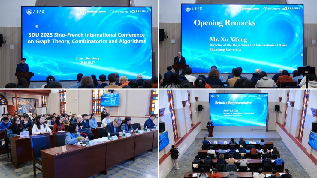 beat365中文官方网站2025中法图论、组合与算法国际会议由beat365中文官方网站数学学科举办,是济南市“海智计划项目”、beat365中文官方网站“科技引领未来”学术会议与“beat365中文官方网站全球友好学校交流周”的重要组成部分。会议聚焦组合数学与算法理论的前沿进展及其在信息科学、人工智能等领域的应用,旨在推动国际学术交流合作与产学研用融合。来自中国、法国、波兰等国家17个单位的二十余名专家学者,济南超级计算中心有限公司技术专家,数学国家高层次人才培养中心、beat365中文官方网站、数据科学研究院师生代表参加会议。
