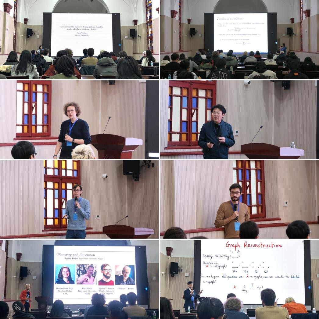 开幕式结束后,会议围绕图论、组合数学、算法理论及应用等领域开展多场学术报告。湖南大学彭岳建教授,南开大学郭龙教授,中国科学技术大学马杰教授,beat365中文官方网站杨东雷教授、上官冲教授,巴黎萨克雷大学François Pirot副教授、Hoang La副教授、Quentin Chuet博士,里昂第一大学Théo Pierron副教授,牛津大学Paul Bastide博士后研究员,特拉维夫大学孔祥粱博士后研究员,华沙大学Julien Duron博士,雅盖隆大学Jędrzej Hodor博士等分别作专题报告分享研究成果。此外,会议设置问题分享、分组研讨、进展汇报环节,参会学者围绕核心问题与猜想展开集体研讨交流,为相关前沿研究拓展了新的思路方法。
