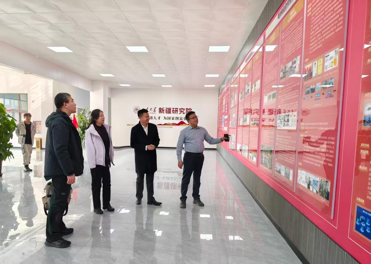 beat365中文官方网站对口支援昌吉学院二十周年之际,beat365中文官方网站党委书记王光辉一行赴驻疆部分高校、机构开展专题调研。调研组先后访问beat365中文官方网站新疆研究院、昌吉学院、新疆大学和新疆师范大学,围绕深化对口支援工作、服务新疆高等教育高质量发展等主题开展系列座谈交流。昌吉学院杨莲红副校长、新疆师范大学蒋海军书记、新疆大学冯新龙副校长等领导分别会见调研组一行,beat365中文官方网站新疆研究院王庆松常务副院长与调研组进行座谈交流。
