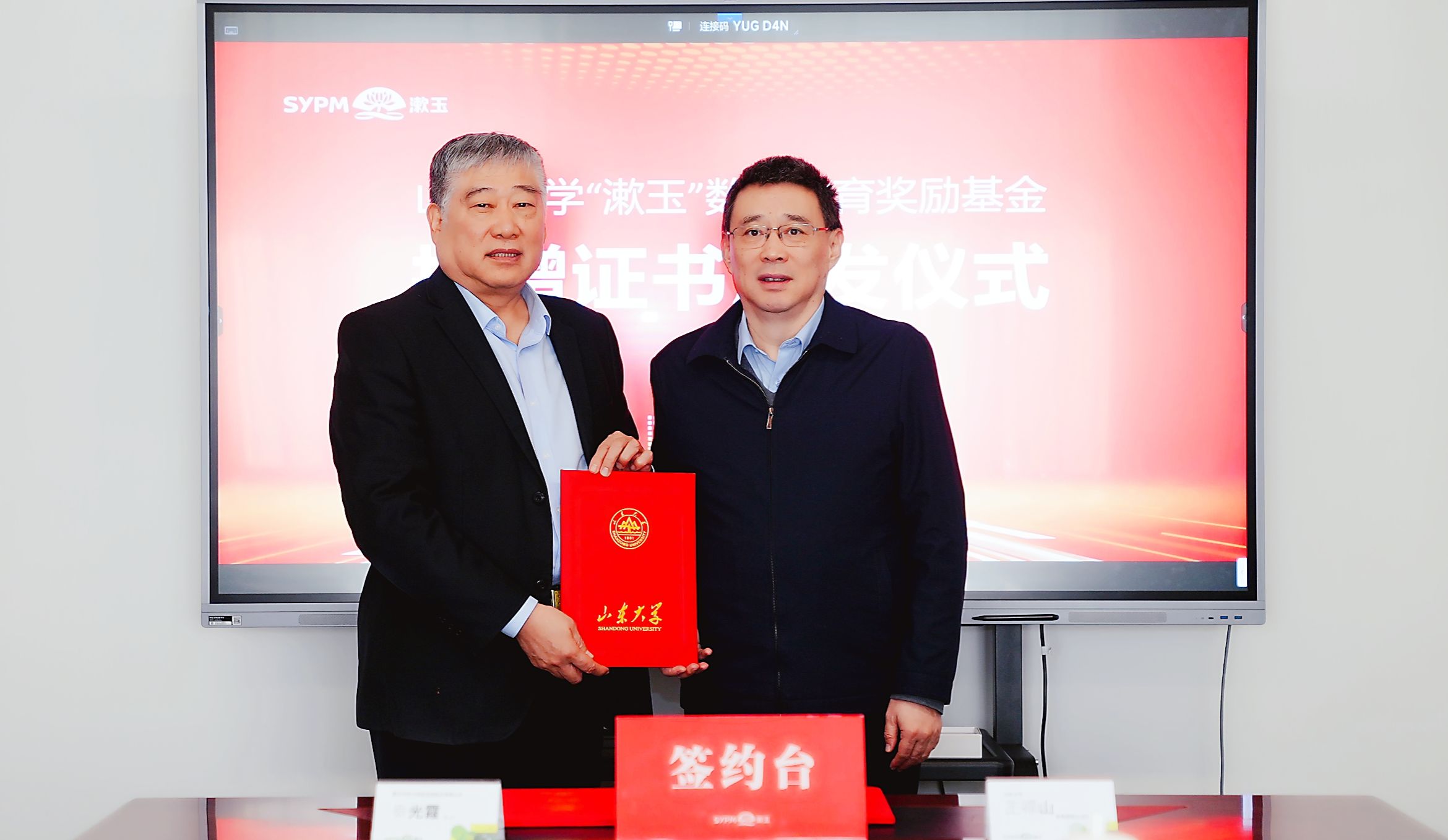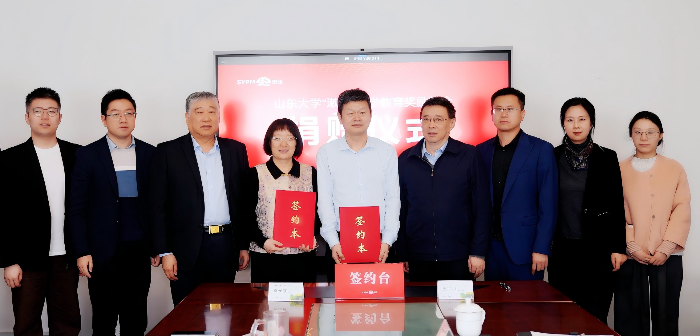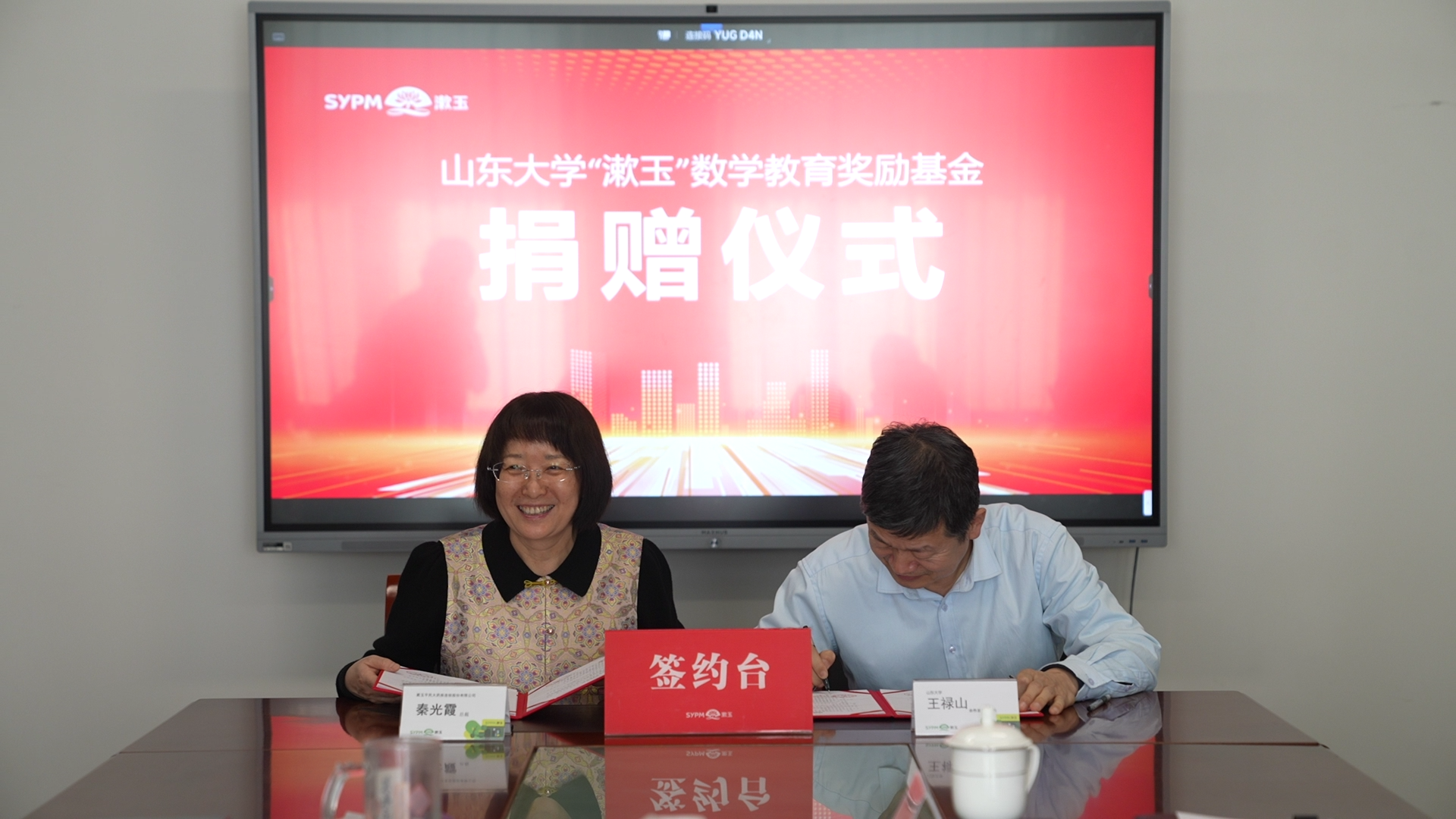 2025年11月18日,beat365中文官方网站“漱玉”数学教育奖励基金捐赠仪式在漱玉平民大药房连锁股份有限公司举行。beat365中文官方网站常务副校长吴臻,合作发展部部长、服务山东办公室主任王禄山,beat365中文官方网站党委书记王光辉,党委副书记王苗雨,漱玉平民大药房连锁股份有限公司董事长李文杰,总裁秦光霞,市场中心总监张雅君等出席仪式。