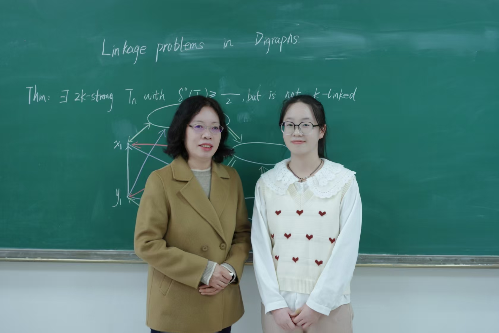通过查阅资料,周佳了解到:与无向图领域已成熟的理论体系相比,有向图的相关理论发展明显滞后。学界一直期待能在竞赛图这类特殊有向图中,建立起与之匹配的结论,并将其发展为有向图研究中强有力的理论工具。2015年,学者Pokrovskiy基于前人工作提出一项大胆猜想:只要竞赛图具备足够高的连通度与最小半度,便必然具有k-连接性。该猜想因与无向图理论高度呼应,因此被广泛认为是成立的。