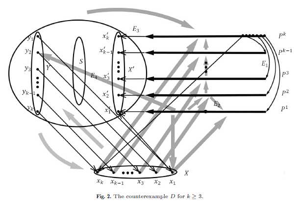 但构造反例的难点在于:这个反例必须同时满足所有看似“足够强”的条件,却依然不具备目标性质。“我们的目标是 k 条不交路径,那我就要构造一种路径阻断机制。”在论文中,她精心构造了一类竞赛图:这类图虽然在连通度和最小半度数上都达到了 “足够大” 的标准,甚至最小半度可以随着图规模无限增大,但却无论如何都无法找到 k 条按指定端点连接的互不相交路径。这一构造直接否定了“2k 连通 + 高半度数 ⇒ k-连接”的猜想,且进一步研究表明,2k+1连通恰好是一个不可再降低的阈值。这一结果不仅反驳了 Pokrovskiy 猜想,也对 Girão 等人在组合数学与图论领域公认的顶级期刊Combinatorica的问题给出了否定回答。