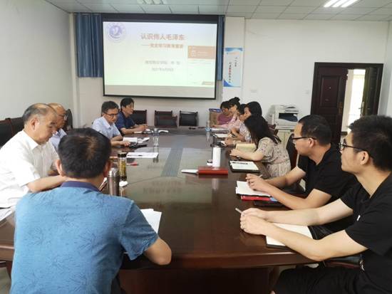 6月9日上午,必赢官网党总支在教务处会议室组织党史学习教育宣讲活动,总支书记李华以《认识伟人毛泽东》为题进行宣讲,全院教职工参加了此次宣讲会。