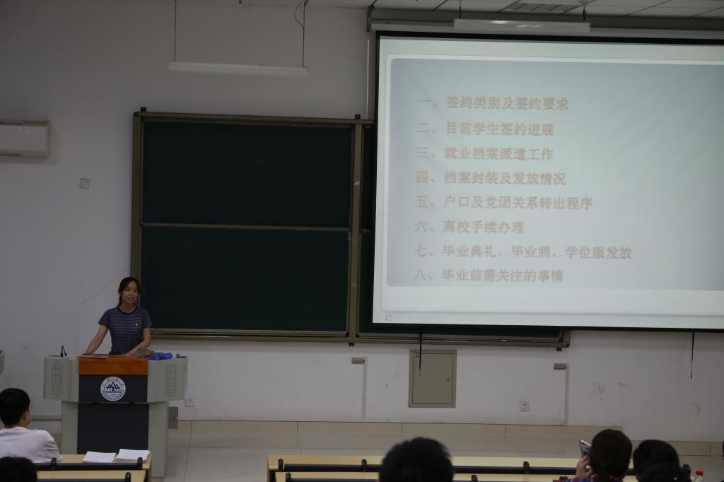 6月4日下午2点,beat365中文官方网站2019届研究生毕业派遣工作会在知新楼C座召开,研究生辅导员鲁皓主持了本次会议,全体2019届研究生毕业生参加了此次会议。