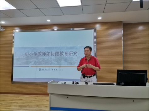 7月13日上午,必赢3003no1线路检测中心吴亚林教授为省培计划(2021)学员作《中小学教师如何做研究》专题讲座。他围绕教师为什么要做研究、教师要研究什么、教师如何做研究等三个方面展开。