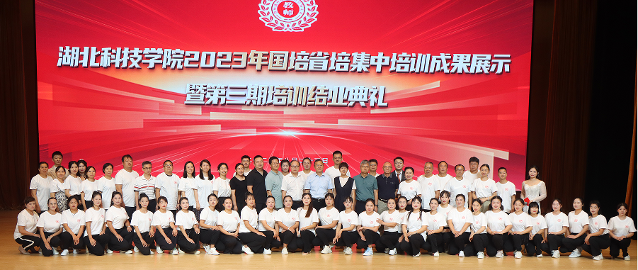 活动在庄严的国歌声中拉开了序幕,全体人员集中观看了湖科“国培计划”(2023)初中生物、初中语文、小学道法、初中道法、小学数学骨干教师、农村幼儿园骨干教师、幼儿园园长提升研修培训等7个项目,“省培计划”(2023)兴师培训计划师德教育、中小学法治副校长、中学团建、心理健康教育等4个项目培训成果视频,展示了暑期集中培训时期共完成了7个“国培计划”项目和4个“省培计划”项目的集中培训工作,培训来自全省88个县市区的中小学幼儿园教师、法治副校长、中学团委书记、骨干园长、师德培训者929人,涵盖12个学科领域。聘请授课专家138人,其中校内专家27人、校外专家111人;市内专家62人、市外专家76人;省内专家123人、省外专家15人;高校专家54人、一线教师和教研员84人。在培训中,开展了形式多样、内容丰富的参训活动。开展临时党支部党建活动15次,班级主题活动12次,专题研讨16次,教学设计比赛、微课教学比赛5次,文学知识竞赛1次,小组心理拓展活动、案例讨论2次,心理视频分析与讨论1次。课前暖场和课后点评活动162次,师德淬炼2次,名校、实践基地观摩、研学3次,集中性文体活动13次,文娱排练30余场,集中性创编活动1次。