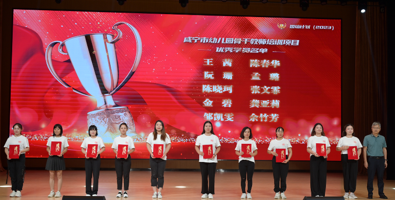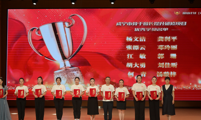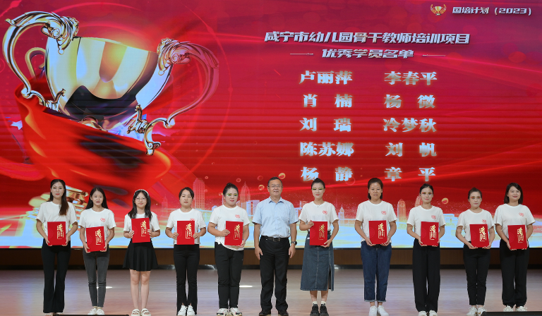活动现场第三期咸宁市骨干园长班和咸宁市农村幼儿园骨干教师班的学员进行了才艺展示,表演了大型舞蹈《苏幕遮》,歌伴舞《长大后我就成了你》,诗朗诵《牵手国培、筑梦同行》等节目,表现了幼儿园教师的在文艺方面的突出才艺。在第三期培训结业典礼环节,表彰第三期优秀学员。