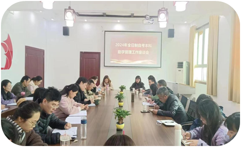 2024年3月25日,必赢3003no1线路检测中心召集助学机构负责人及机构全体工作人员就加强自考助学项目规范与发展召开座谈会,院长厉阳春出席座谈会。